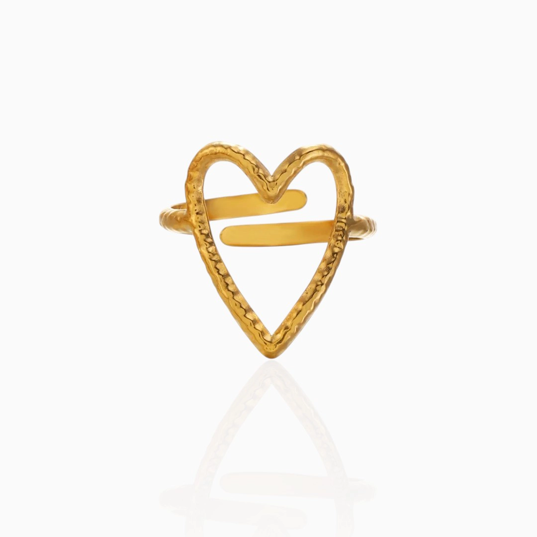 Elegant Heart Free Size Ring made of stainless steel with a gold plated finish. Adjustable size, perfect for women who love durable and stylish jewelry.